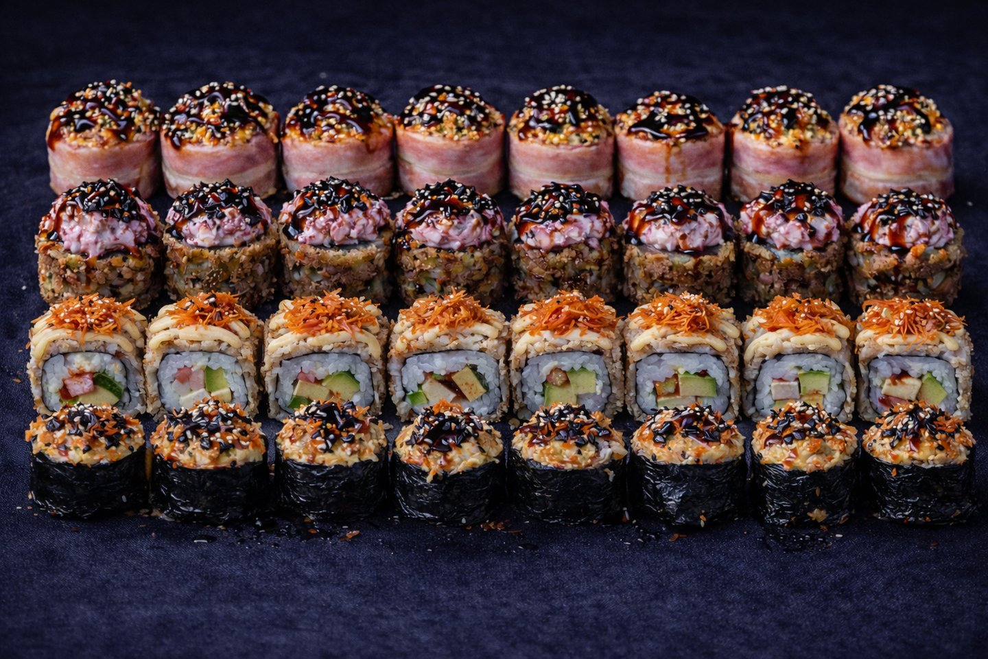 k07. bacon fuel (8 gb.) - Cepti mix gliemenes ar sieru, gurķis, tomati, kūpināts bekons, unagi mērce.