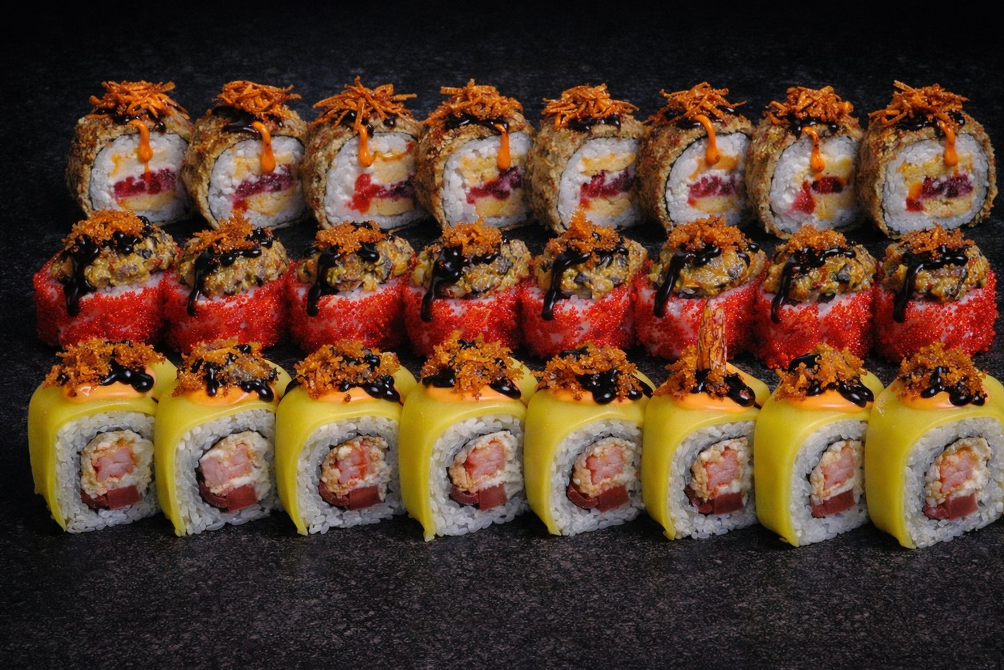 t02. salmon turbo (8 gb.) - Lasis,mango, tomago, krēmsiers ar karamelizētiem sīpoliem, unagi mērce, asā mērce,burkāni.