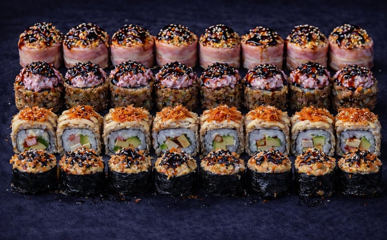 k04. nori drive (8 gb.) - lasis, paprika, tomago, krēmsiers, siera-bekona mix, 95 saldā mērce, unagi mērce,kraukšķīgi rīsi, panko, dehidrētas olīves
